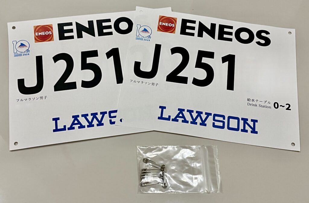 胸と背中につけるゼッケンが1枚ずつで計2枚とゼッケンを止めるためのピン。私は完走目標なので、スタート地点は最後尾のJブロック。Jから始まる番号でした。
