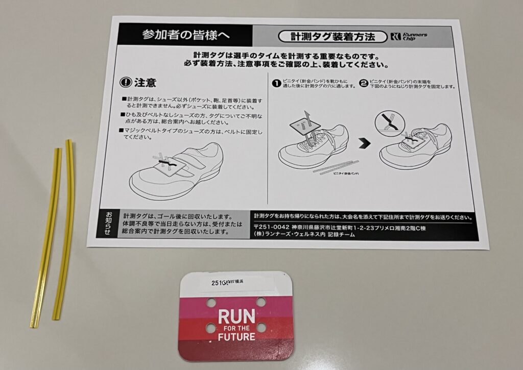 - アスリートビブスセット(ゼッケン、計測チップなど)